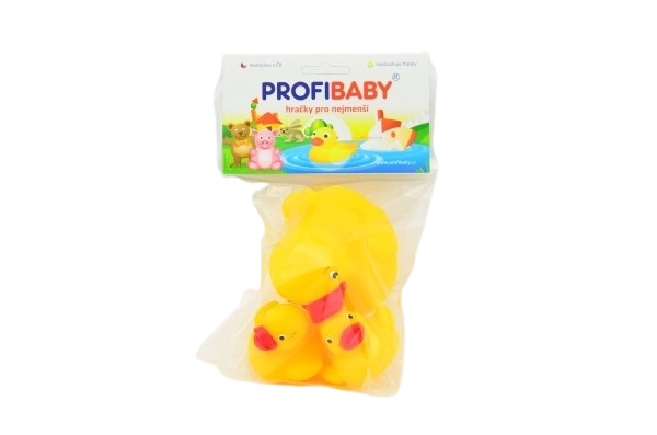 Slatki set od tri gumena pačića za zabavno kupanje u kadi i u bazenu. Mekani materijal je ugodan na dodir i siguran za najmlađe. Prikladno od rođenja, lako se čisti i odlično pluta na površini vode.