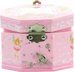 Ova očaravajuća glazbena kutijica za nakit u ružičastoj boji s bajkovitim motivima savršeno je mjesto za čuvanje prstenja, naušnica i drugih sitnica. Nakon okretanja ključem balerina se graciozno vrti pred zrcalom, a kutijica reproducira nježnu melodiju.
