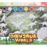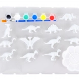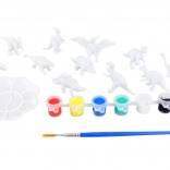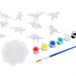 Set sadrži 3D dinosaure, 6 boja, kist i paletu – djeca mogu odmah započeti s kreativnim radom bez dodatne kupnje pribora.