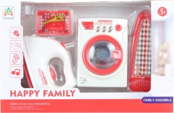 Otkrijte zabavni dječji set kućanskih aparata Happy Family koji djeci približava kućanske poslove kroz igru. Set sadrži perilicu rublja, glačalo, dasku za glačanje i koš za rublje. Realistični elementi, svjetla i zvukovi potiču razvoj mašte i igru uloga. Idealno za djecu od 3 godine.