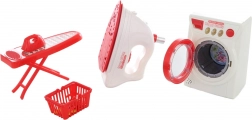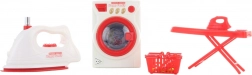 Ovaj atraktivan set za dječju sobu omogućuje malim domaćicama i domaćinima oponašati uobičajene kućanske aktivnosti. Djeca vježbaju finu motoriku, koncentraciju i odgovornost, dok uživaju u sigurnoj i kreativnoj igri. Modeli aparata usklađeni su u crveno-bijeloj kombinaciji i uvjerljivo oponašaju stvarne uređaje.