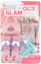 Preslatki dječji set za ljepotu razveselit će svaku malu modnu damu. Sadrži cipelice, torbicu, sušilo za kosu, peglu za kosu, češalj i druge dodatke za kreativnu igru. Idealno za djecu od 3 godine te za razvoj mašte i fine motorike.