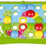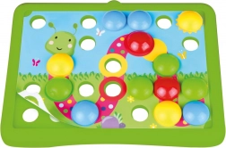 Otkrijte kreativnu igru koja razvija maštu i vještine. Djeca umeću šarene klinove u predloške s prirodnim motivima (npr. gusjenica, cvijeće ili životinje) te uvježbavaju preciznost, strpljenje i prepoznavanje boja. Velike rupice i klinovi dobro leže u ruci i olakšavaju rukovanje malim rukama.