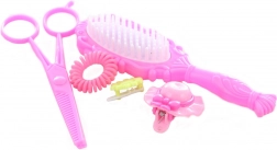 Dio pakiranja je bogat set pribora: češalj, gumice, spirale i ukosnice, koji omogućuju zabavnu i sigurnu igru. Proizvod je dizajniran za male ruke i potiče razvoj mašte i spretnosti.