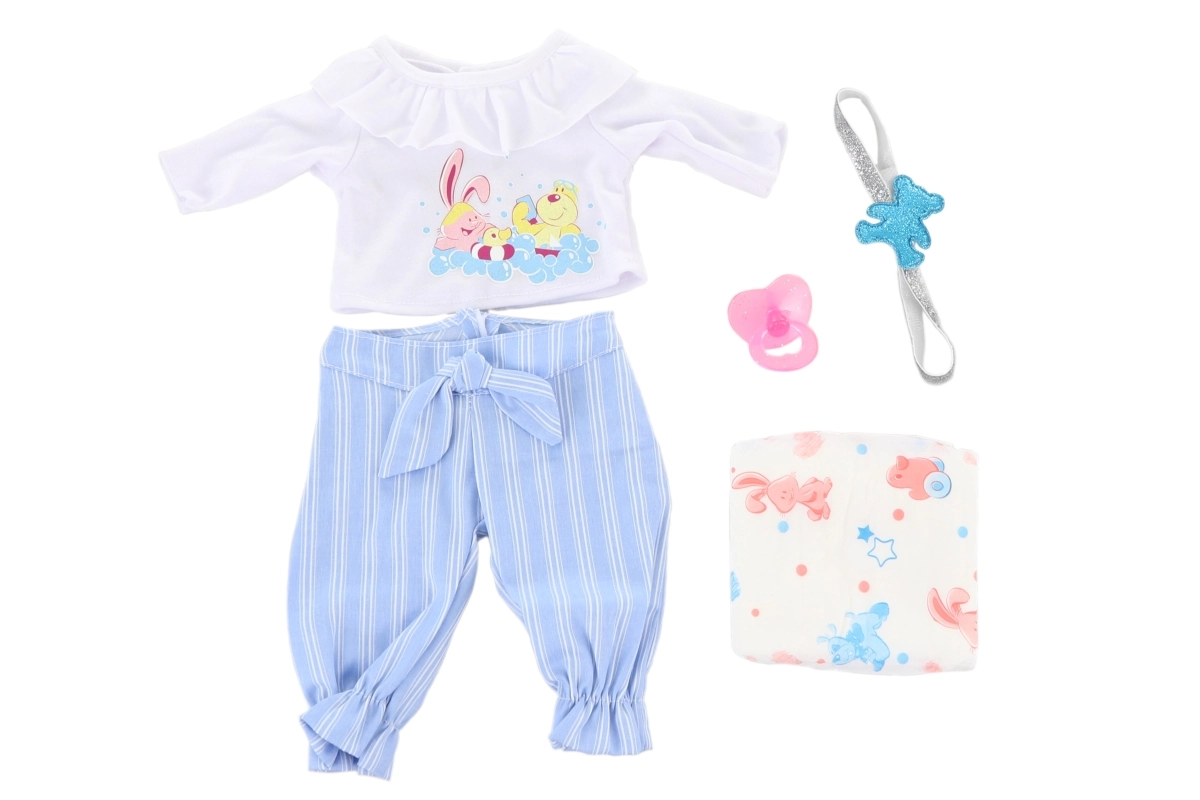 Priuštite svojoj lutki novu odjevnu kombinaciju, a djeci beskrajne mogućnosti igre. Odjeća je dizajnirana za lutke visine približno 45 cm i odgovara većini uobičajenih tipova lutaka te veličine. Zahvaljujući promišljenom kroju, oblačenje je jednostavno i za mlađu djecu.