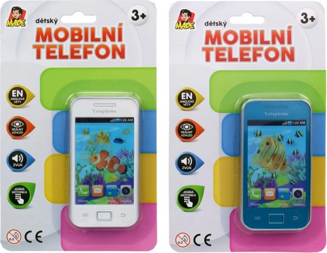Dječji mobilni telefon na baterije 11 cm od izdržljive plastike. Prikladno od 3 godine, open box pakiranje. 2× AA baterije uključene u pakiranju. Idealno za igru uloga.