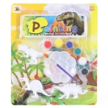 3 plastične figurice dinosaura, 6 boja, 1 kist, 1 paleta