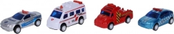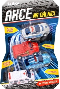 Set od četiri autića s funkcijom povratnog navijanja za zabavnu vožnju na 'autocesti'. Duljina svakog autića je 7 cm. Savršen poklon za male ljubitelje automobila i igara.