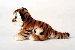 Plišani smeđi tigar dimenzija približno 25 x 19 x 11 cm (bez repa). Duljina repa približno 12 cm. Dob 0+