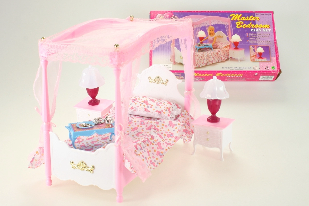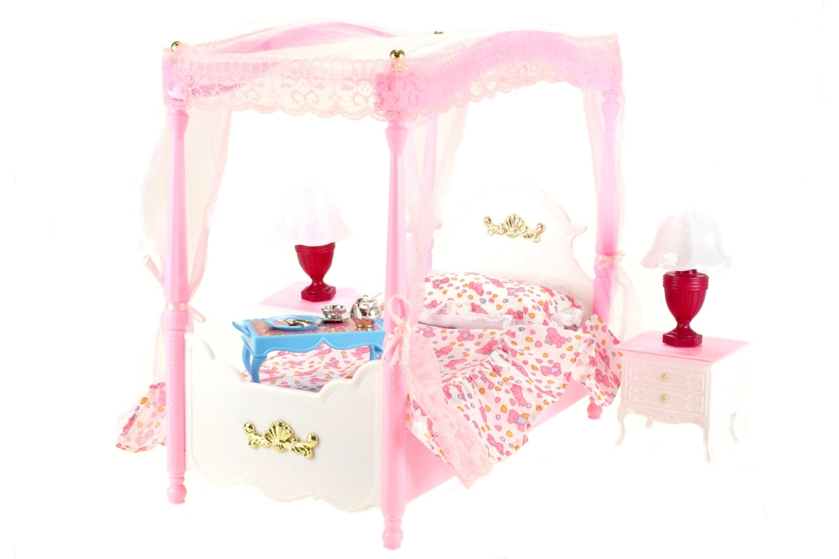 Glorie krevet s baldahinom za lutke sa svjetlećim lampicama