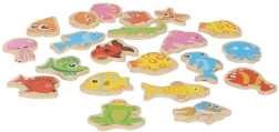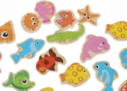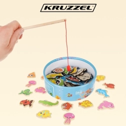 Ova drvena magnetska igra izvrstan je izbor za zajedničku obiteljsku zabavu. Djeca love simpatična morska bića pomoću magnetskih štapova, pri čemu vježbaju koordinaciju oko–ruka, strpljenje i preciznost. Zahvaljujući živim bojama i prijateljskom dizajnu, igra prirodno budi znatiželju i uči o svijetu vode.