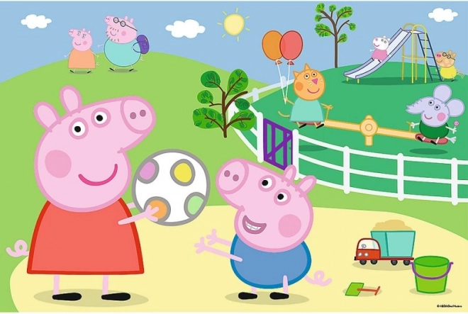 Razveselite male obožavatelje crtića PEPPA PIG. Nakon slaganja nastaje šarena scena s igrališta koja potiče djecu na prepričavanje priča i vježba strpljenje. Zahvaljujući većim i precizno izrezanim dijelovima, puzzle se udobno slažu i odlične su za prve slagalice.