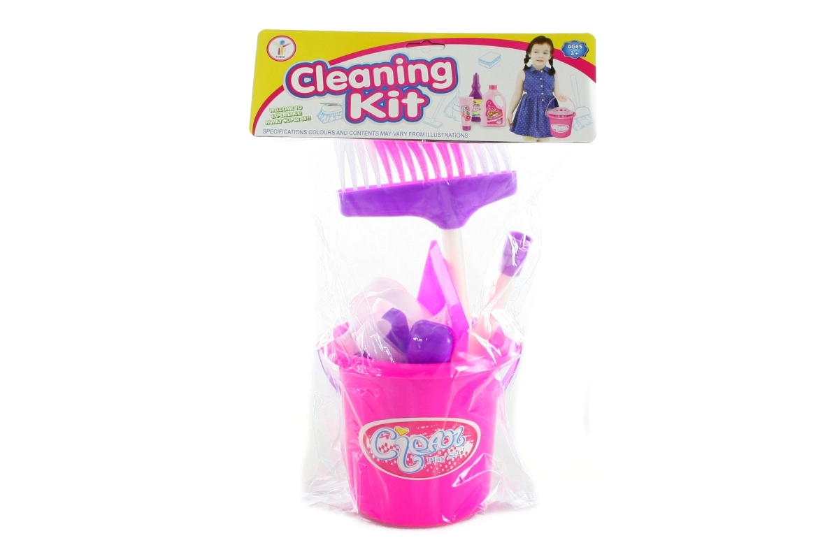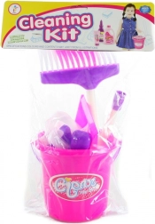 Zabavni set za čišćenje za male pomagače sadrži sve potrebno za kućno pospremanje – kanticu, metlu, mop, lopaticu i četkicu. Idealan za razvoj motorike i maštovite igre. Lagan plastični materijal, kompletna oprema i prikladno za djecu od 3 godine.