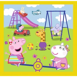 Otkrijte trostruku zabavu sa setom slagalica 3u1 s motivima PRASE PEPPA. U pakiranju se nalaze tri slagalice s različitim brojem dijelova, pa će u njima uživati i mlađa i starija djeca. Zahvaljujući ekološkim bojama i papiru s platnenom teksturom, slagalice su sigurne za djecu i ugodne za slaganje bez odsjaja.