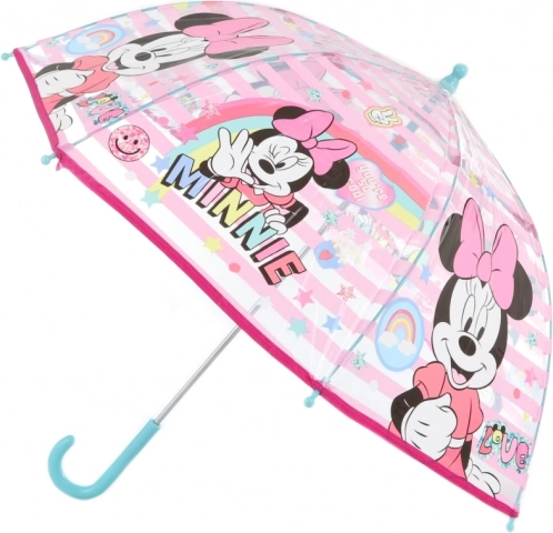 Uživajte u kišnim danima s razigranim i elegantnim dodatkom – prozirnim ručnim kišobranom s likom MINNIE. Transparentni materijal osigurava bolju preglednost, dok izdržljiva konstrukcija pouzdano štiti od kiše. Zahvaljujući kompaktnoj duljini, lako se nosi u ruksaku ili torbi.