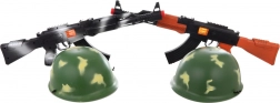 Zabavan dječji set za male vojnike sadrži zveckajuću plastičnu strojnicu duljine oko 53 cm i vojnu kacigu s unutarnjim promjerom oko 18,5 cm. Sjajan izbor za igru vojnika, razvoj mašte i akcijske pustolovine. Pogodno za djecu od 3 godine.