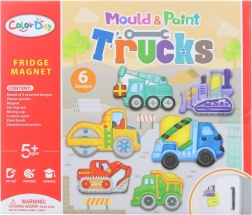 Pretvorite stvaranje u pustolovinu na gradilištu. Uz ovaj set djeca će izliti magnete od gipsa u kalup sa 6 motiva građevinskih vozila, obojiti ih priloženim bojama i pomoću magneta stvoriti vesele ukrase za hladnjak ili magnetsku ploču.
