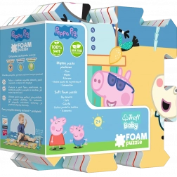 Pjenaste slagalice s omiljenim motivima iz crtića PRAŠČIĆ PEPA razveselit će male obožavatelje i roditelje. Dijelovi su izrađeni od posebnog višeslojnog materijala sličnog debeloj podlozi za kampiranje, a ne od klasične rebraste EVA pjene. Zahvaljujući nadstandardnoj debljini od 1,5 cm ublažavaju udarce i pružaju udobno i sigurno mjesto za igru.