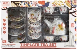Stilska limena čajna garnitura razveselit će svaku malu domaćicu. Omogućuje organiziranje zabavnih čajanki, potiče igru uloga i razvoj mašte. Set sadrži 15 dijelova i idealan je za djecu od 3 godine.