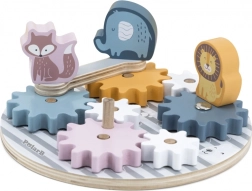 Potičite zabavu i razvoj s našim drvenim zupčastim kockama, gdje mehanika postaje igra. Set sadrži 7 šarenih zupčanih dijelova, 3 zabavne figurice životinja i osnovnu ploču na koju možete postaviti zupčanike tako da jedan pokreće ostale.