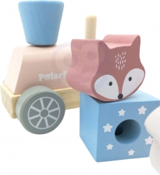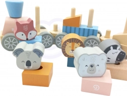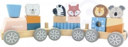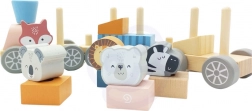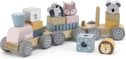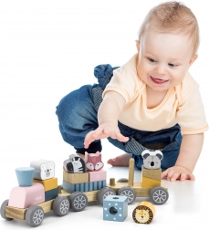 Ovaj set sadrži lokomotivu s tri povezana vagona, koji omogućuju raznovrsno slaganje i kombinacije blokova ukrašenih životinjicama. Tijekom igre djeca razvijaju sposobnosti rješavanja problema i koordinaciju pokreta.
