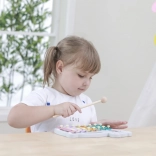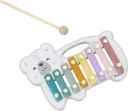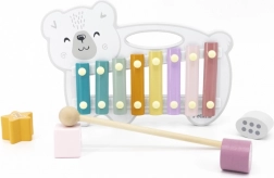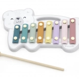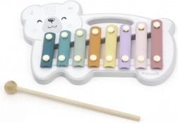 Drveni ksilofon u obliku polarnog medvjeda spaja razigranu estetiku s funkcionalnim glazbenim instrumentom. Pastelno obojene metalne lamele stvaraju ugodne tonove pri udarcu drvenom palicom, čime djecu prirodno potiču na eksperimentiranje sa zvukovima i ritmom.