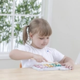 Osam pastelnim bojama obojenih tipki motivira djecu na otkrivanje tonova, ritma i jednostavnih melodija. Savršeno za razvoj slušne percepcije i kreativnosti.