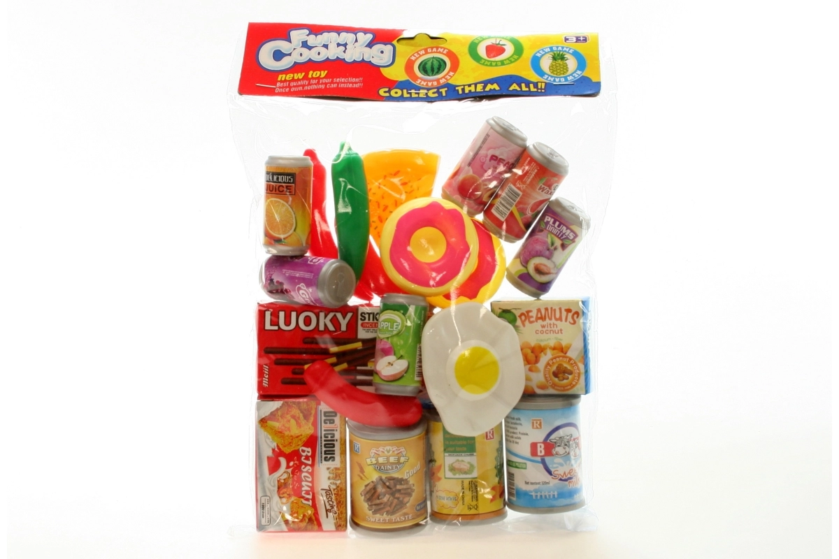 Ovaj set hrane u vrećici odličan je dodatak dječjoj kuhinjici ili trgovini. Nudi mješavinu realističnih namirnica od plastike i papira koje pomažu djeci razvijati maštu i učiti osnove zdravog prehranjivanja kroz igru.