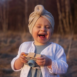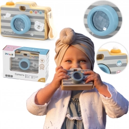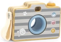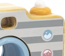 Stilska drvena igračka koja spaja fotoaparat i kaleidoskop u jednom. Sigurne netoksične boje, glatki rubovi i kvalitetno drvo jamče izdržljivost i udobno držanje. Potiče maštu, finu motoriku i koordinaciju oko–ruka – dovoljno je reći „sir!“ i počinje svijet zamišljenog fotografiranja.