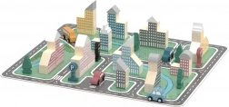 U setu se nalazi 56 drvenih kocaka različitih oblika i veličina te pregledna brošura s idejama za gradnju – idealno za prve građevine i naprednije projekte.