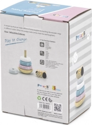 Piramida je izrađena od kvalitetnog drveta i obojena izdržljivim, netoksičnim bojama na bazi vode. Zahvaljujući dimenzijama približno 13 cm u visinu i 8,5 cm u promjeru, prikladna je za dječju sobu i za putovanja. Proizvod ispunjava stroge sigurnosne norme i nosi CE oznaku – idealan izbor za prvu didaktičku igračku.