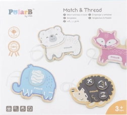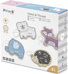 Set PolarB Match & Thread donosi djeci radost stvaranja i učenja. Šarene drvene kartice životinja imaju glatke rubove i dovoljno velike otvore za lako provlačenje. Djeca vježbaju hvat, preciznost i logičko razmišljanje dok slažu pojedine dijelove i treniraju šniranje.