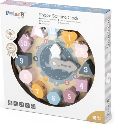Dječji drveni sat POLARB kombinira razvrstavanje oblika, slaganje brojeva i nizanje u jednu svestranu obrazovnu igračku. Dvanaest numeriranih dijelova u geometrijskim oblicima umeće se u odgovarajuće izreze na brojčaniku, dok pomične kazaljke uče djecu razumjeti sate. Svaki dio ima otvor za lako provlačenje uzice, što prirodno razvija finu motoriku i koncentraciju.