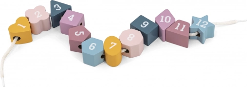 Svaki dio ima otvor za provlačenje uzice – potiče hvat, koordinaciju oko–ruka i strpljenje.