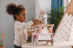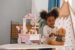 Dječji drveni štand 3u1 POLARB od VIGA pretvara svaku sobu u slatko kraljevstvo. Zahvaljujući pokretnom dizajnu, zvoncu i raznolikom setu drvenih poslastica, djeca vježbaju kreativnost, komunikaciju i igranje uloga prodavača ili slastičara. Nježna pastelna paleta i pažljiva izrada pozivaju na igru uvijek iznova.