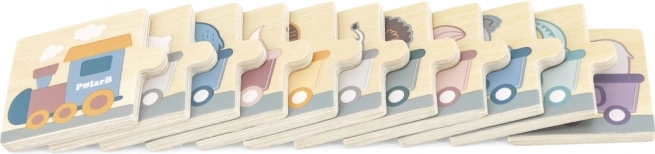 Otkrijte zabavan način učenja s drvenim puzzlama PolarB. Djeca kroz igru uvježbavaju brojeve, boje i logičko povezivanje. Povezuju životinjice s odgovarajućim brojevima i slažu šareni vlakić redoslijedom. Idealno za razvoj koordinacije ruka–oko i fine motorike.