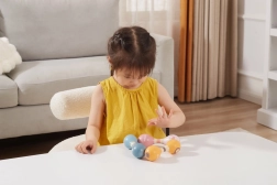 Ergonomski oblik pristaje malim dječjim ručicama, potiče koordinaciju ruka–oko te prve pokušaje trešnje i kotrljanja.