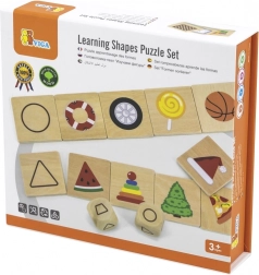Drvene obrazovne slagalice VIGA usmjerene su na razvoj kognitivnih i motoričkih sposobnosti djece. Ova kvalitetna slagalica izrađena je od prirodnog drva i obojana netoksičnim bojama, što osigurava sigurnost za vaše dijete. Set sadrži različite oblike koje djeca povezuju s predmetima iz svakodnevice, poput lončanice (trapez) ili komada pizze (trokut).