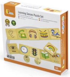 VIGA edukativna igra drvene puzzle nudi idealan način kako djeca mogu razviti svoje razmišljanje i koordinaciju. Cilj je povezati predmete s odabranim osjetilima, što uključuje razne svakodnevne objekte.