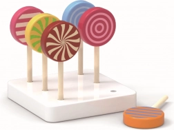 Set 6 lizalica je postavljen na bijeloj drvenoj podlozi, čime se izvrsno prezentiraju. Lizalice će biti prekrasan dodatak dječjoj trgovini i zasigurno će se svidjeti svim ljubiteljima slatkiša!