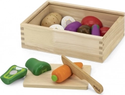 Set omogućuje djeci vježbanje fine motorike prilikom rezbarenja i sastavljanja povrća u izvorne oblike.