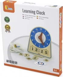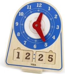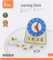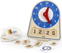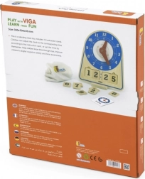 Drveni sat za učenje vremena brenda Viga iznimno je edukativno pomagalo koje spaja zabavu i učenje. Ova samostojeća igračka sadrži 12 instrukcijskih kartica koje djeci pomažu naučiti sate. Dijete može samostalno namjestiti bilo koje vrijeme uz pomoć kartica ili učiti pratiti sat. Ekološka torba omogućuje jednostavno spremanje dodataka.