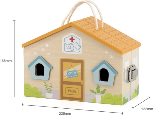 Otkrijte radost igre s drvenom veterinarskom klinikom VIGA, koja djeci omogućuje da postanu mali veterinari. Ova prijenosna igračka opremljena je udobnom ručkom, zahvaljujući kojoj se lako prenosi.