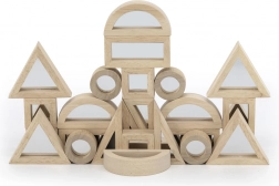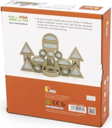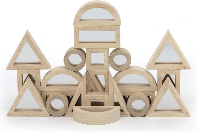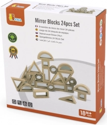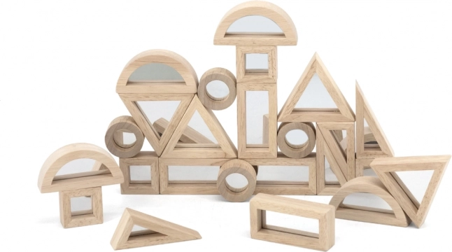 Set sadrži 24 drvene dvostrane kocke sa zrcalima koje djeci pomažu razvijati koordinaciju oka i ruke te prepoznavanje različitih oblika. U pakiranju se nalazi šest različitih oblika, uključujući pravokutne, kvadratne, okrugle, pravokutne trokutove, jednakostranične trokute i polukružne oblike. Zahvaljujući zrcalima djeca također razvijaju osjećaj vlastitog „ja“, što povećava njihovo samopouzdanje.