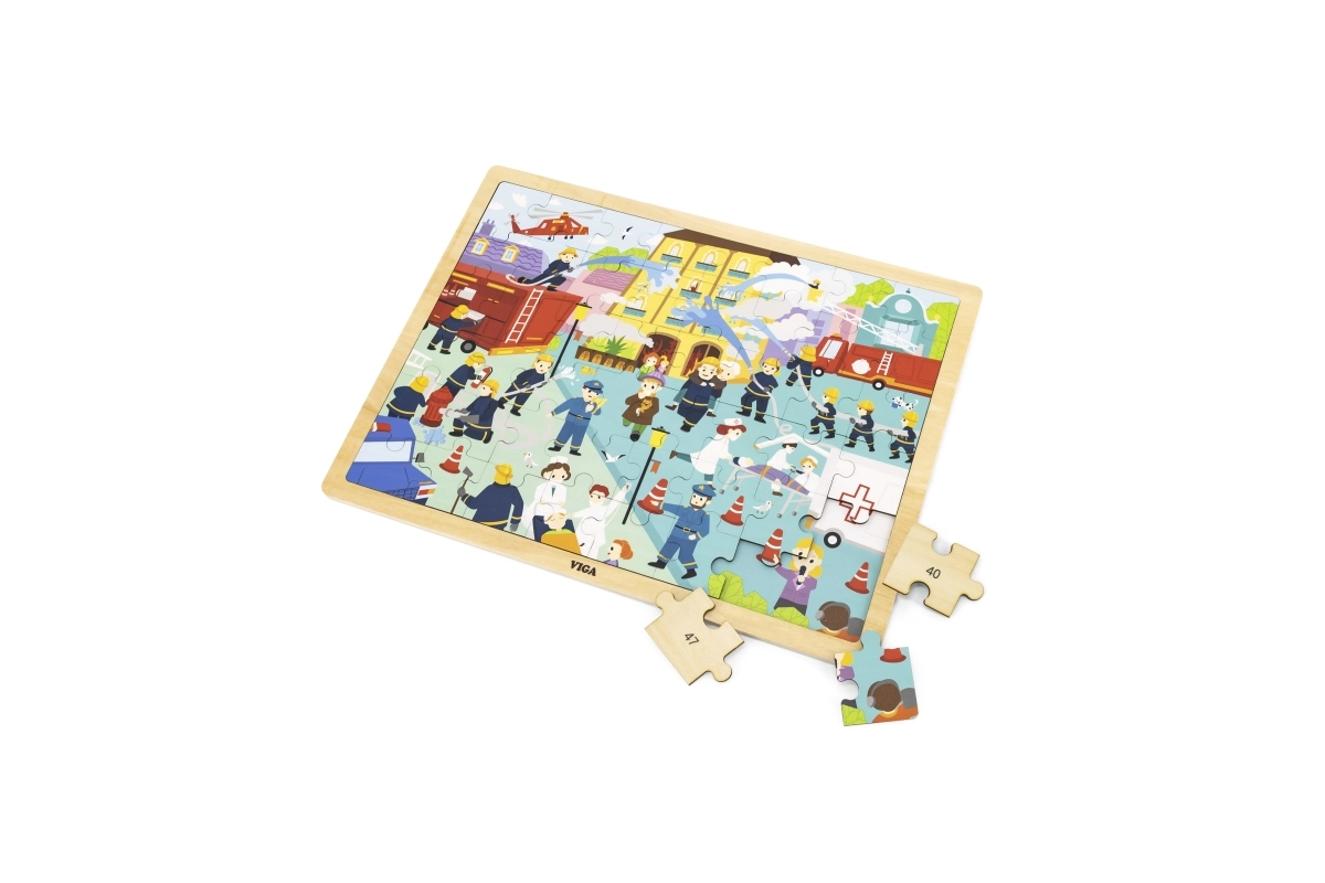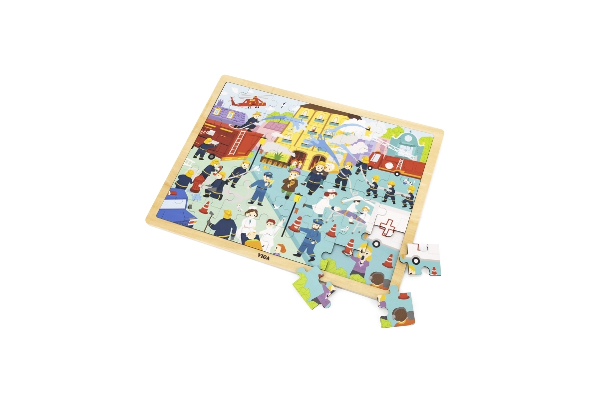 Otkrijte zabavne drvene puzzle s motivom vatrogasaca koje djecu na razigran način upoznaju sa svijetom spasilaca. Zahvaljujući 48 čvrstim dijelovima i praktičnom drvenom okviru, puzzle potiču finu motoriku, logičko razmišljanje i strpljenje. Idealno za djecu od 24 mjeseca.