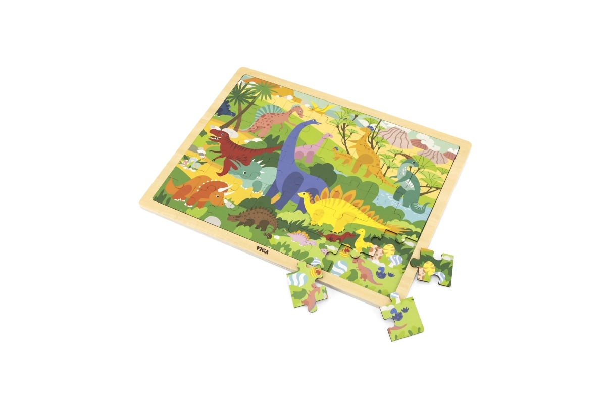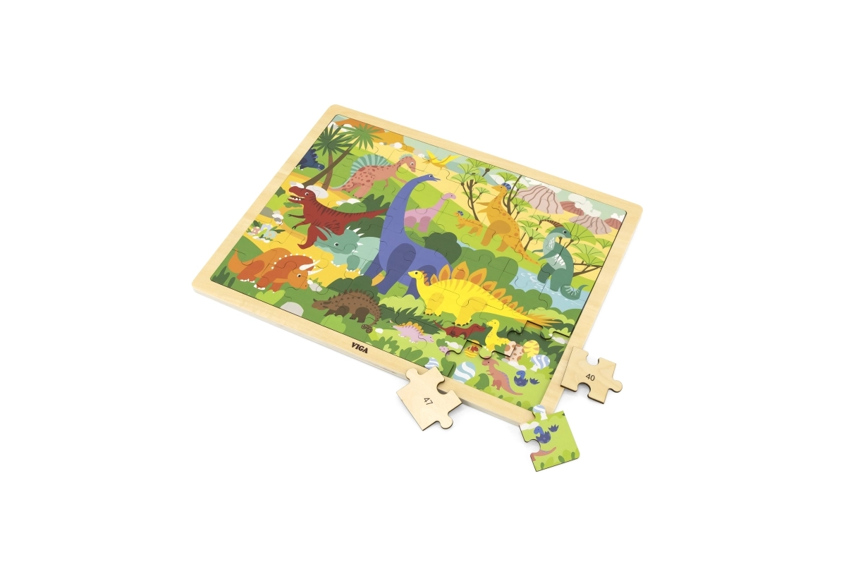 Priredite djeci zabavno i edukativno slaganje s drvenim puzzlama s motivom dinosaura. Zahvaljujući 48 dijelova, idealne su kao prva „veća” slagalica koja postupno razvija vještine i samopouzdanje malih graditelja. Dijelovi su čvrsti, dobro leže u ruci i mogu se udobno postavljati na drvenu ploču s okvirom.