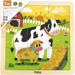 Drvene puzzle od 9 dijelova s motivom kravica. Dimenzije drvene ploče cca 22 x 22 x 1 cm. Dimenzije pakiranja cca 22 x 22 x 1 cm. Dob: 18m+
