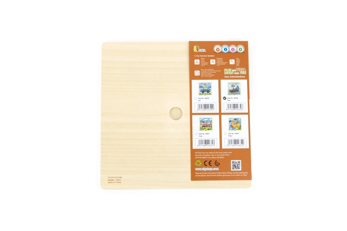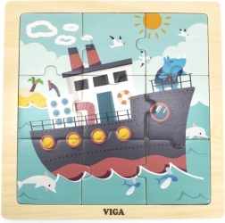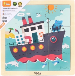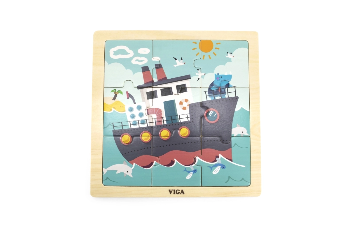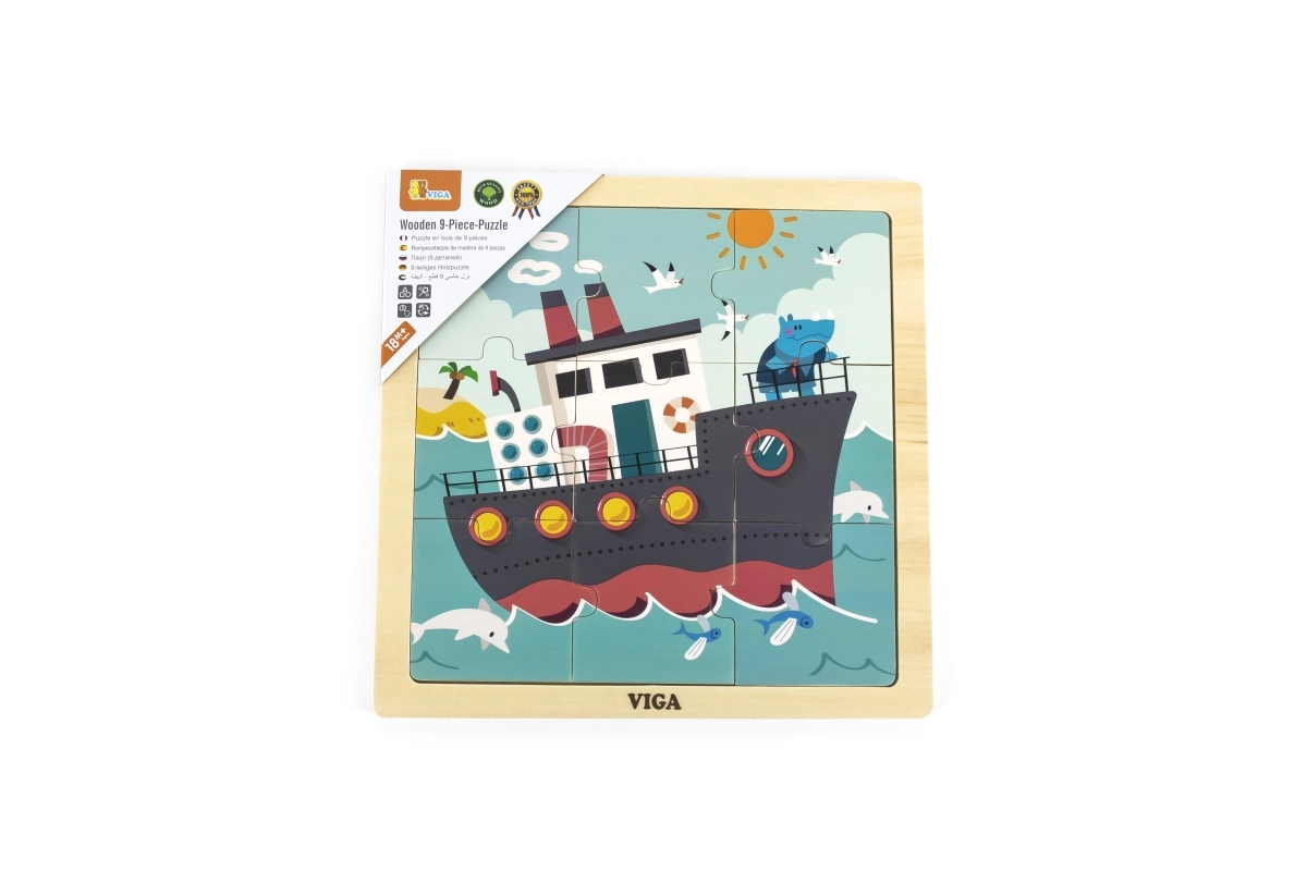 Drvene puzzle VIGA s motivom broda nude 9 lako prihvatljivih dijelova na čvrstoj drvenoj ploči – idealno za najmlađe. Zahvaljujući sigurnim netoksičnim bojama, glatkim rubovima i izdržljivoj drvenoj izradi odličan su izbor za dom i vrtić. Djeca će uživati u radosti otkrivanja te vježbati finu motoriku, logičko razmišljanje i kognitivne vještine.