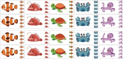 U kompletu je 10 kartica s obostranim tiskom – ukupno 20 uzoraka za igru s morskim životinjama i drugim temama.