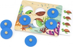 Istražujte tajne mora s drvenom edukativnom igrom koja djecu zabavlja i istovremeno razvija. Umetanjem tematskih kartica u drvenu ploču i postupnim otkrivanjem okruglih žetona s ručkama djeca vježbaju koncentraciju, pamćenje i vizualno uočavanje detalja. Igra je idealna za samostalnu i obiteljsku zabavu.